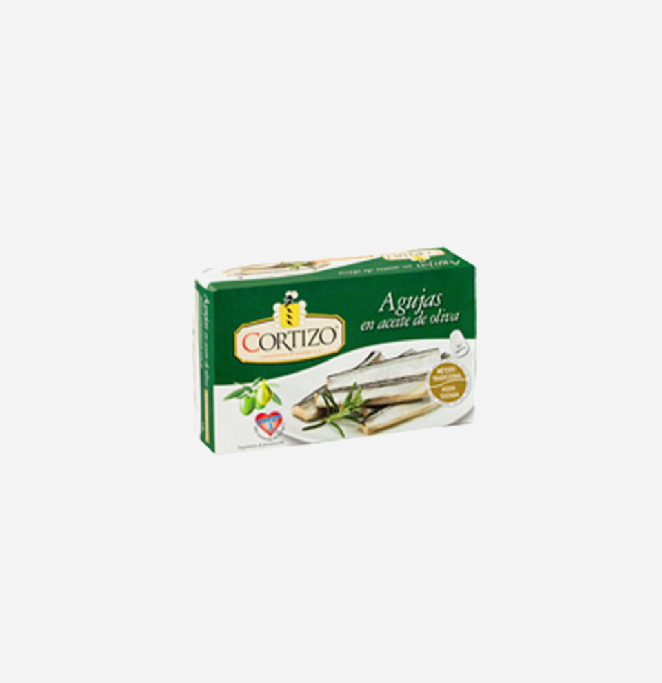 Pescado azul rico en proteínas y que se caracteriza por ser un ejemplar alargado y picudo. El proceso de elaboración de la conserva es manual tanto en su limpieza como en su empaque y al finalizar el proceso de conserva el ejemplar cuenta con toda su vistosidad de longitud, brillo, textura e intenso sabor.