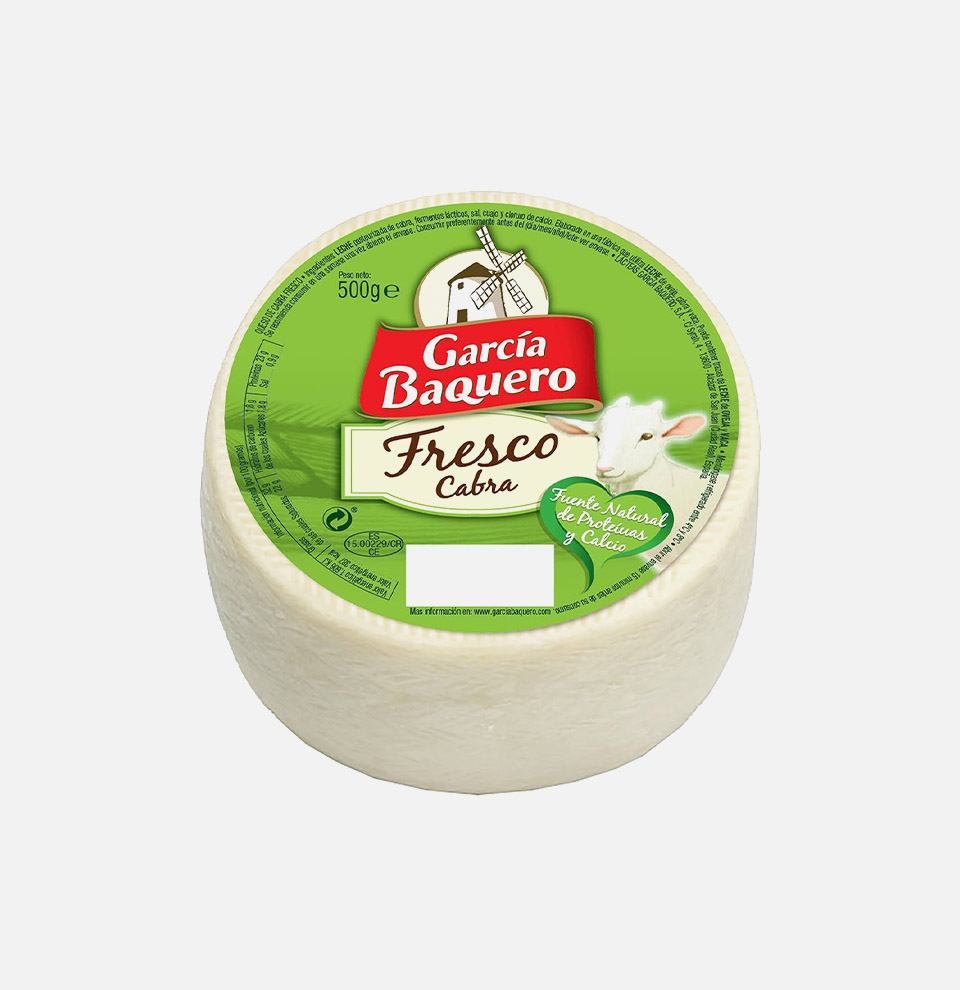 Queso Fresco de Cabra Extramini 500gr de García Baquero. Con un sabor y frescura como recién hecho. Sin Colorantes ni conservantes. Sin Gluten.un Queso fresco tradicional adecuado para ensaladas o para picar entre horas. Para los amantes del Queso de Cabra. Su textura fundente y cremosa es más consistente que la del Queso de Burgos.
