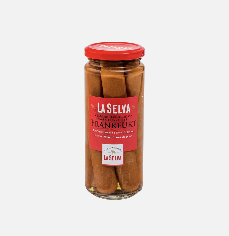 Auténticas salchichas Frankfurt elaboradas exclusivamente con carne de cerdo. Una vez cocidas se someten a un ahumado natural lo que les confiere un sabor muy selecto y especial.