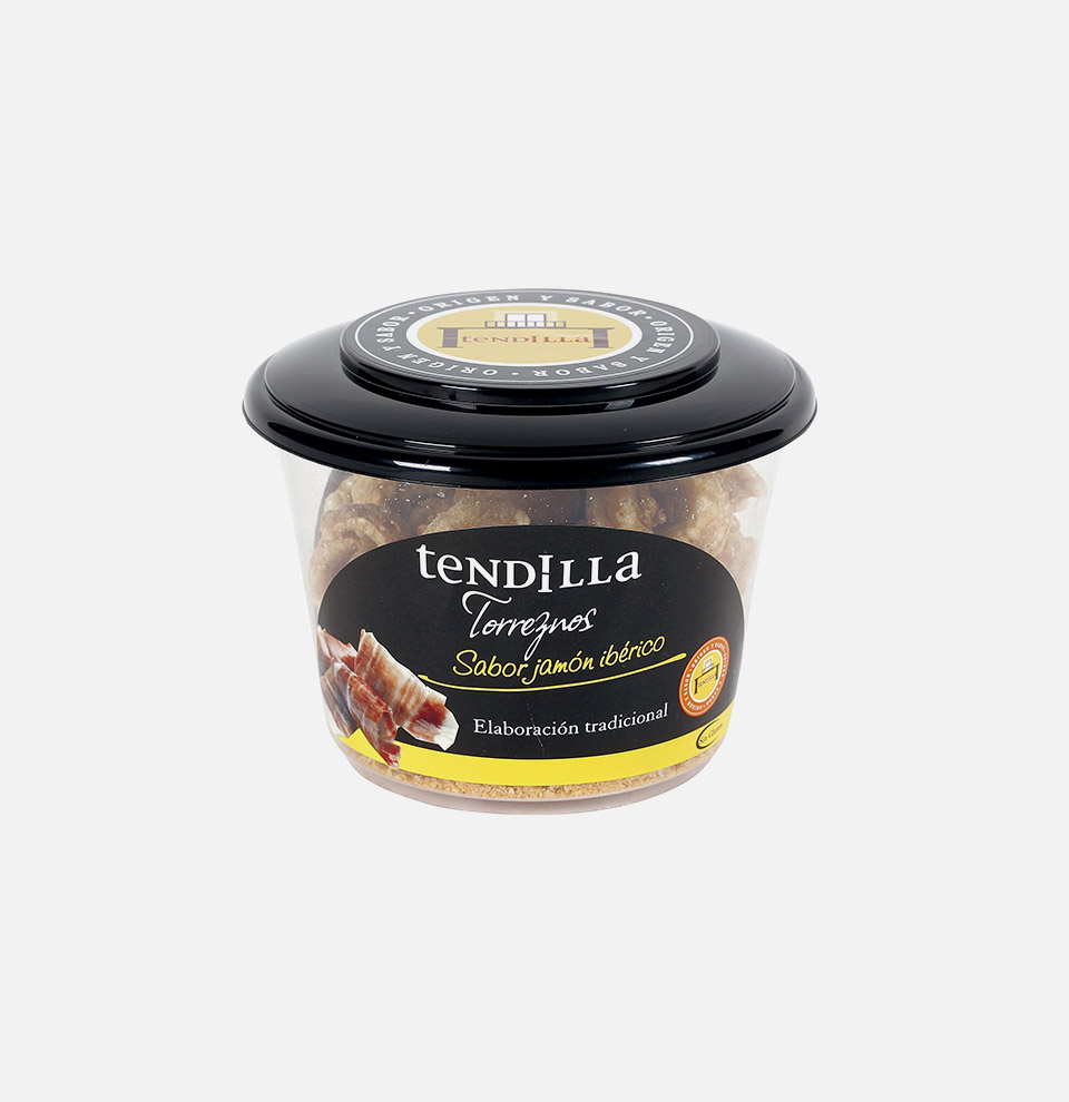 Una variante de nuestro inmejorable producto estrella, los torreznillos naturales, pensado para los amantes del sabor Jamon Iberico. Elaborado con las mismas recetas tradicionales y manteniendo la calidad de siempre. Origen y sabor a pueblo